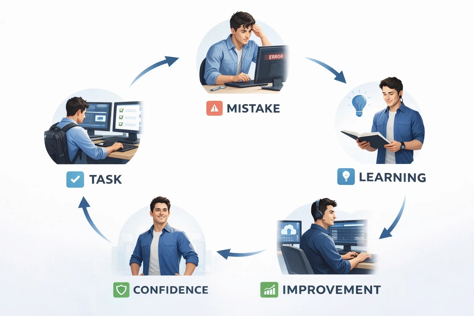 On-the-job learning works best when combined with self-learning. You don’t need to study all night. Even 30–60 minutes daily is enough.